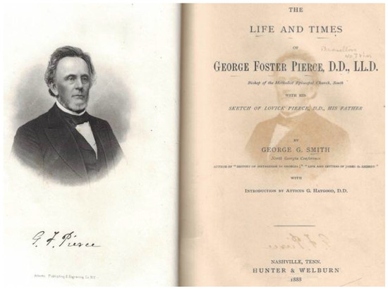 - Smith, George G. 1888. The Life and Times of George F. Pierce, D.D., LL.D. Nashville: Hunter and Wellburn. [Google Scholar]