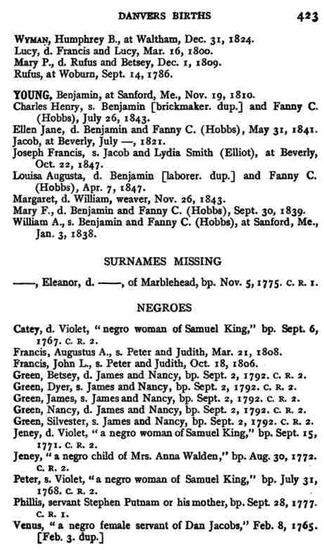 | 22 | See Danvers, Marriages, Negroes, https://ma-vitalrecords.org/MA/Essex/Danvers/aMarriagesOt.shtml#Negroes, accessed on 5 August 2021. |