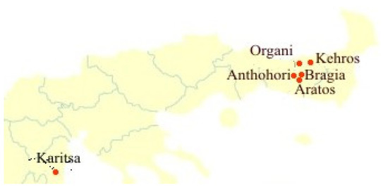 The under study populations live in three neighboring villages in the Rhodopi lowlands, those of Aratos, Bragia, and Anthohori (Figure 1).