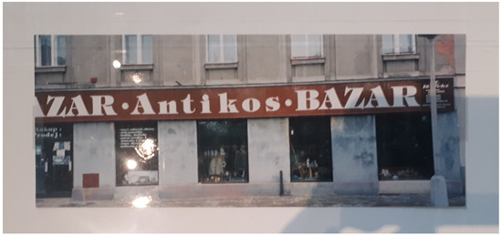 Sebald’s original photograph of the Antikos Bazar in Terezín; author’s own image, taken at the exhibition ‘W.G. Sebald: Far Away, But From Where?’ held at the Sainsbury Centre for Visual Arts, University of East Anglia, May-August 2019. The image is reproduced in black and white within the text (pp. 272–73).