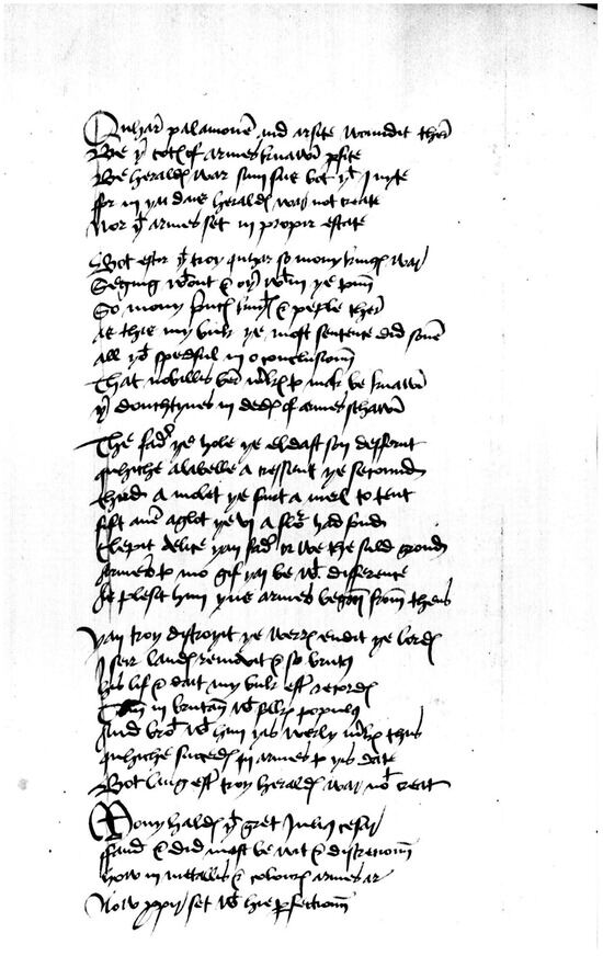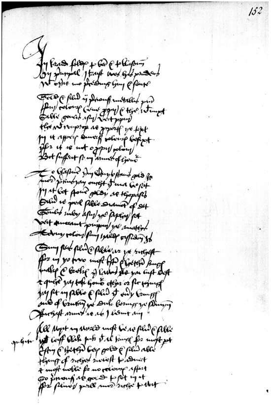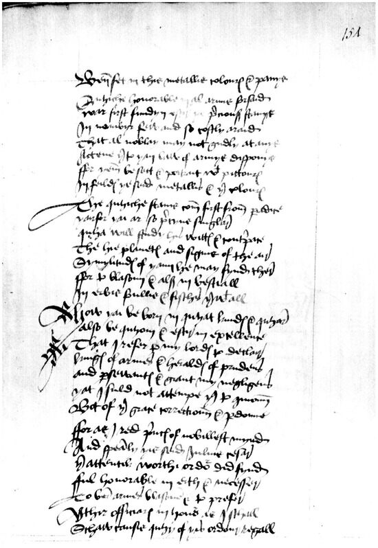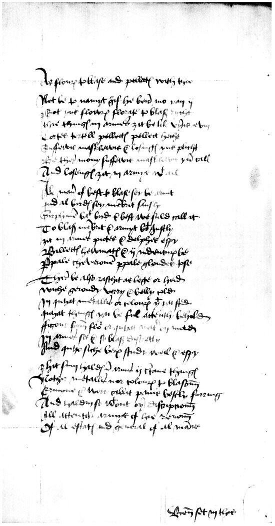 - Bowers, Robert Hood. 1936. The Middle Scotch Poem on Heraldry in Queen’s College MS. 161. Modern Language Notes 51: 429–31. [Google Scholar] [CrossRef]