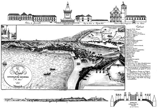 View of Luanda’s Upper and Lower Towns, 1825. Source: “Prespectiva da Cidade de S. Paulo de Loanda no Reino de Angola”, 1825, Arquivo Histórico Ultramarino, Iconografia Impressa.
