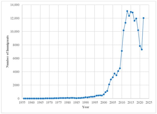The number of Nepalese immigrants to the USA, fiscal years 1956–2022 (source: DHS).