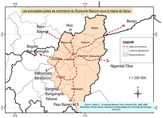 The main trade routes in the Bamum Kingdom under the reign of Njoya. Source: Map realised by Romeo Keumo Songong Roméo based on Tardits Claude (1980), Le Royaume Bamoun, Paris, Armand Colin, p. 360.