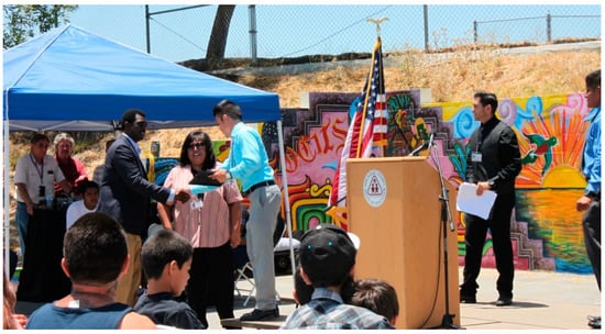 In the author’s experiences described previously, it was critical to capture the stories from the students to memorialize their efforts. Storytelling preserves culture, promotes group solidarity, and “emboldens the hearer” (Delgado 1989, p. 2437). The author was concerned that after his tenure, the school campus would be eventually disbanded and that there would be a return to gang sites as the norm. The students were more than criminals and victims. The students were able to overcome divisions of street gangs. The students could coexist and exceed expectations. If they were brought together, it would not “become a blood bath”, as one county supervisor warned the author prior to the opening of the school campus. It has since been eleven years since the school was established. The campus remains today. Blood baths did not ensue, and the students continue to coexist despite gang affiliations. The author enacted a critical move to tell the stories of these counternarratives as a means to permanently enshrine them into the collective psyche of the county office of education. The school held a ribbon-cutting ceremony.