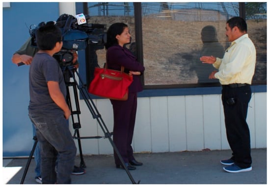 The principal reached out to the local news media, the county office of education chief communications officer, and television media to attend. The local print media published an article on the event, and the local Univision television station featured the event during the nightly 6 o’clock news. These stories have been captured and framed in the school office so that they might be remembered and preserved. These interactions are shown in Figure 5 and Figure 6.