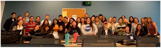 One co-author and one of the community college social work classes who produced advocacy letters in 2020. The photograph is from the authors’ personal collection.