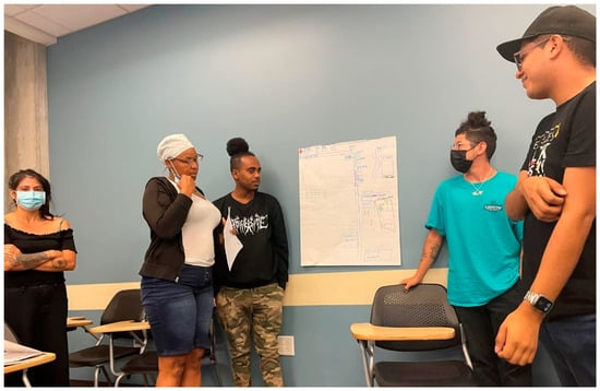 The last form of capital, resistant capital, refers to the skills and knowledge attained when challenging injustice. To practice this, the authors utilize assignments and activities familiar with community organizing, where students engage in didactic dialogues with one another. The classroom becomes an established safe space to discuss issues of injustice they have experienced or observed and to conduct reviews of the academic and gray literature and popular media to better understand these issues and possible solutions. Didactic- and dialogue-based learning have been found to be more effective than other methods of education, including traditional lectures (Hsieh et al. 2024). From these stories, students are taught to not only identify gaps in resources in their communities, but also to identify the strengths and assets they have. Figure 15 shows a co-authors class, where a group of students presented their asset map.
