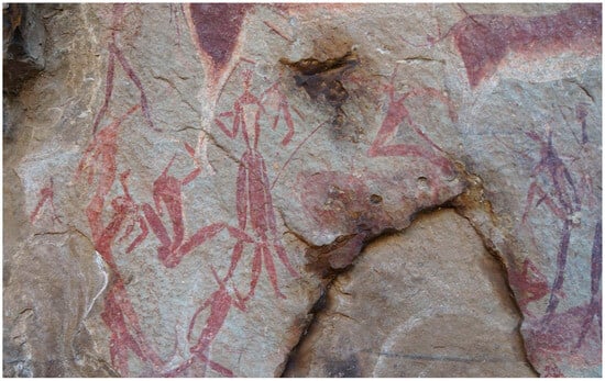 - Skinner, Andrew, and Sam Challis. 2023. Post-Traumatic Stress Disorder (PTSD) in San Forager Theories of Disease, and Its Implications for Understanding Images of Conflict in Southern African Rock Art. Cambridge Archaeological Journal 33: 673–691. [Google Scholar] [CrossRef]