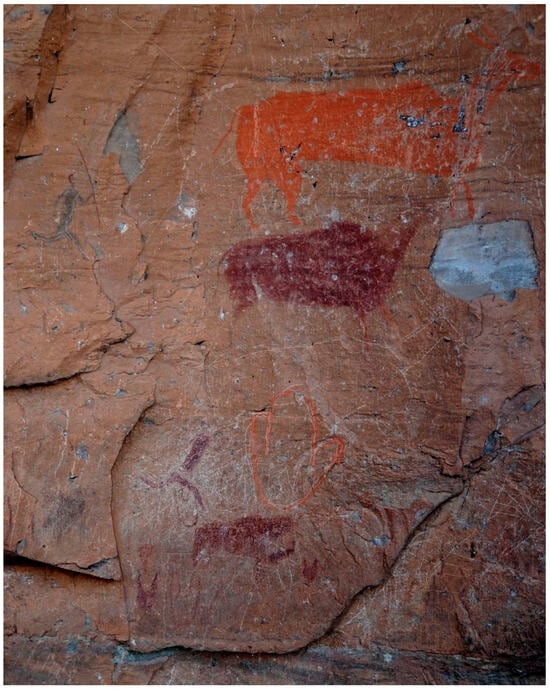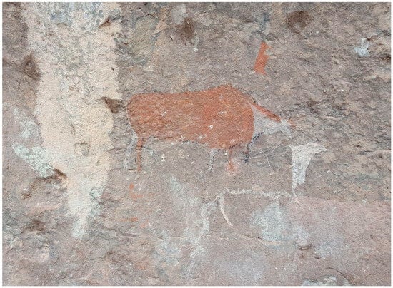 - Smits, Lucas. 1983. Rock Paintings in Lesotho: Site Characteristics. The South African Archaeological Bulletin 38: 62–76. [Google Scholar] [CrossRef]