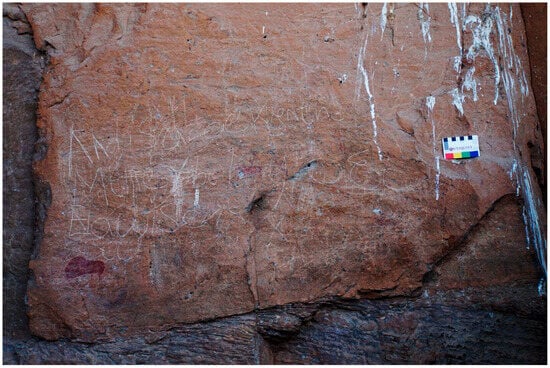 - Laue, Ghilraen, and Claire Dean. 2022. Rock art conservation with a focus on Southern Africa. In Oxford Research Encyclopedia of Anthropology. Oxford: Oxford University Press. [Google Scholar] [CrossRef]