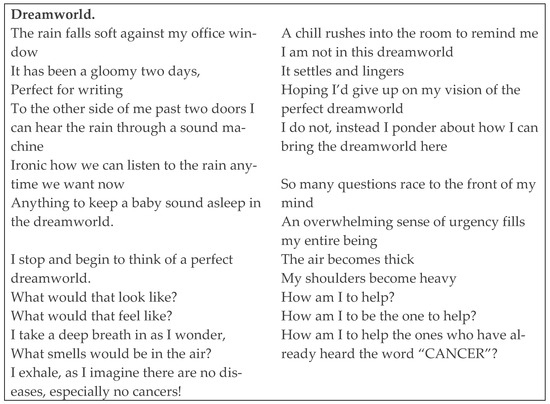 Sample poem, “Dreamworld” by Mariah Abney.
