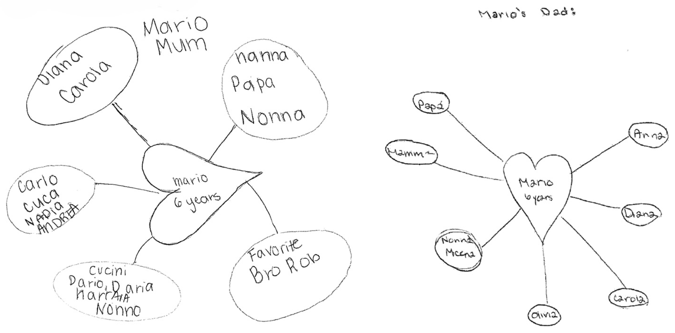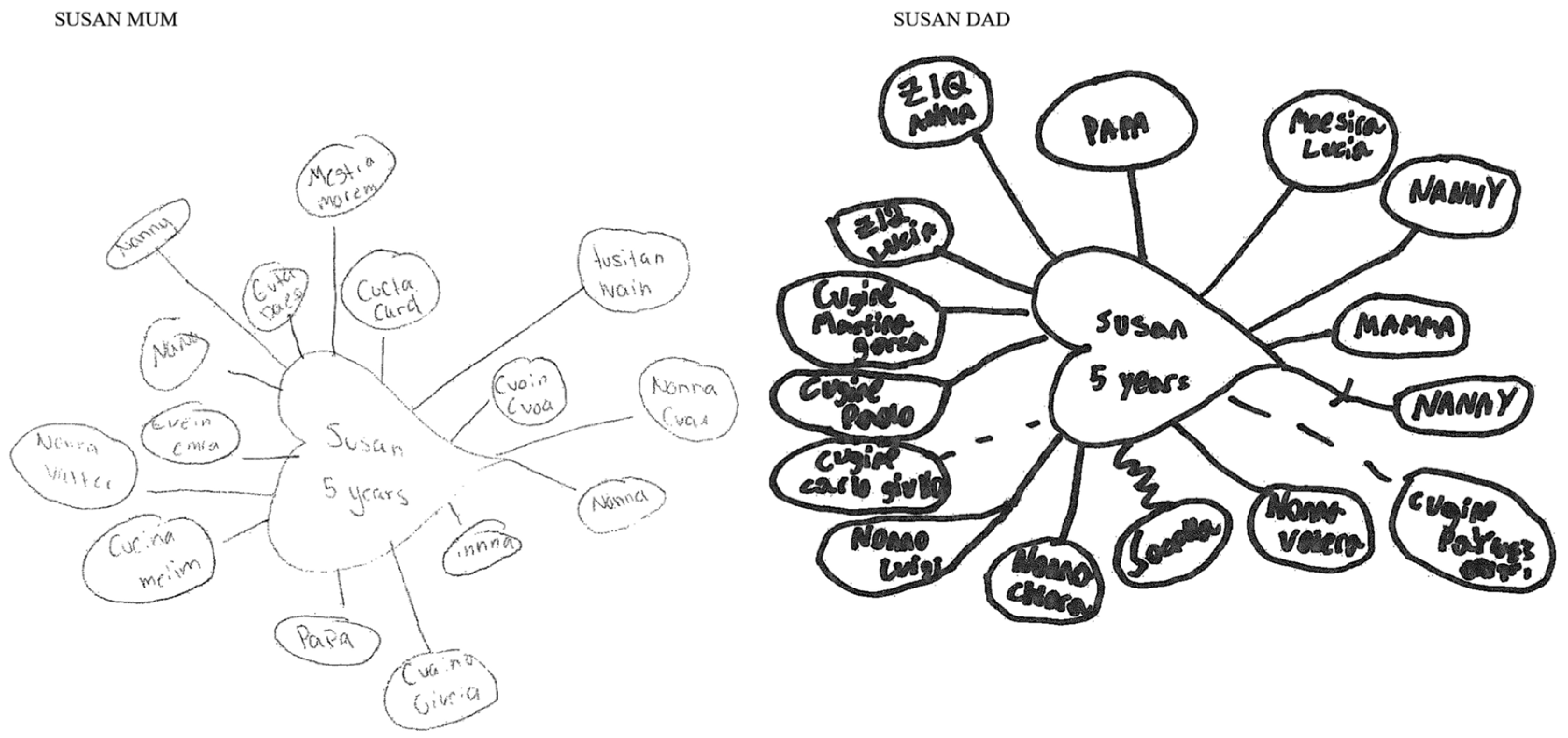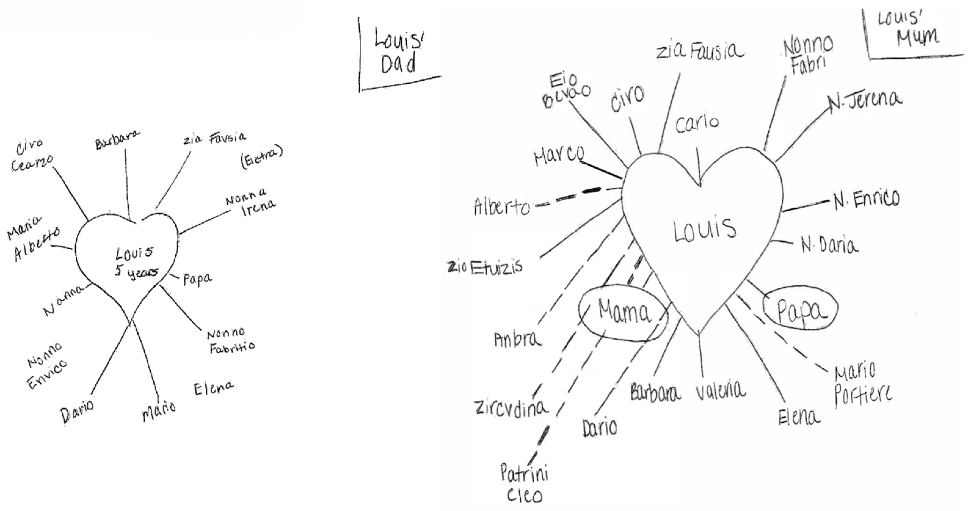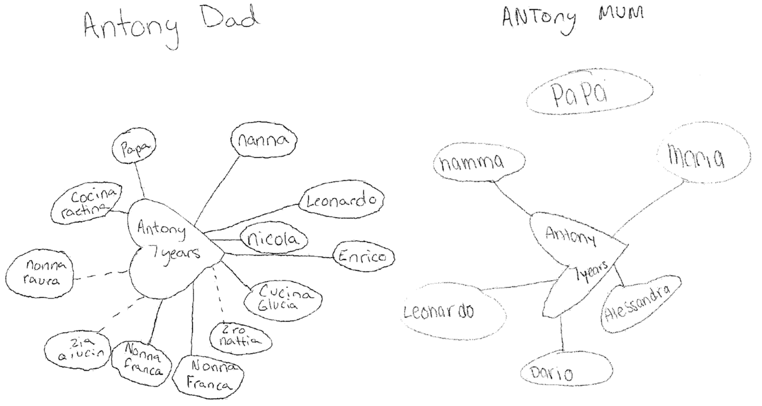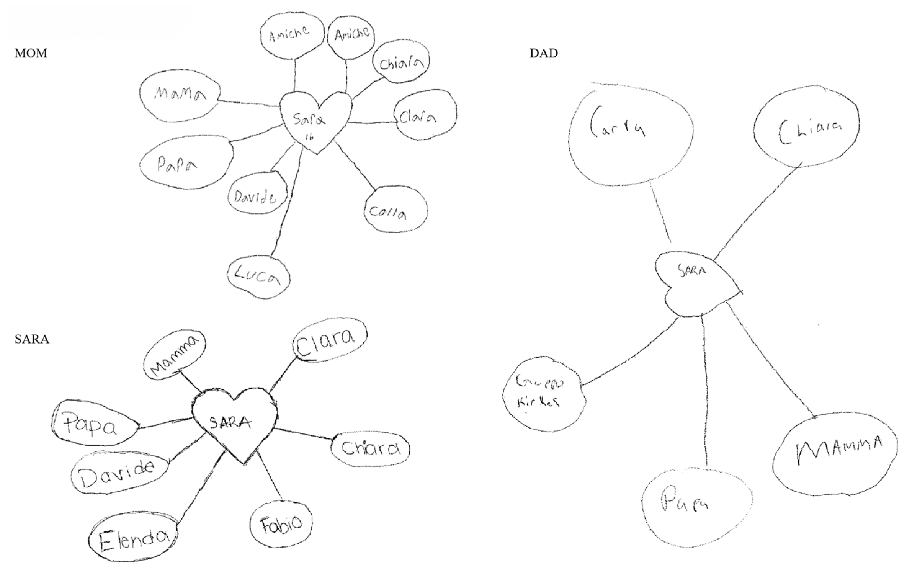 3.3. ICC Ecomapping by Both Coparents and Their Adolescent Children: Two Cases from Pavia, Italy