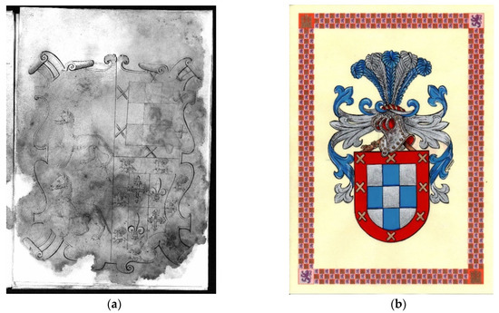 (a) Arms for the grille of Francisca de Villafañe, 1546. ARCHV, Pleitos Civiles, Varela (O), C. 1051-1; (b) Certification of arms for the Villafañe lineage, Segovia, 2023.