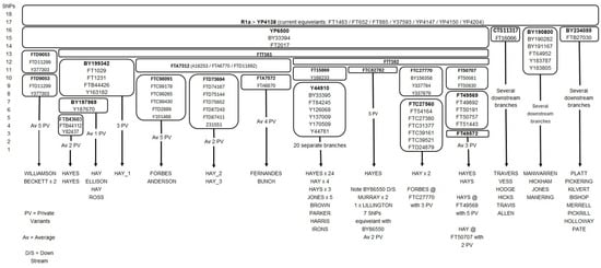 The BigY700 test results of the three well-documented noble Hay descendants showed that they all shared the following Y-SNP ancestral path (see Table 3): R1a-M420 > YP4141 > YP4132 > YP4169 > YP4208 > YP4131 > YP4138 > YP6500 > FTT161.