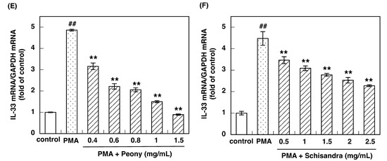 3.3. IC50 of Constituent Crude Drugs of SST to Inhibit PMA-Induced Up-Regulation of IL-33 and H1R Gene Expression