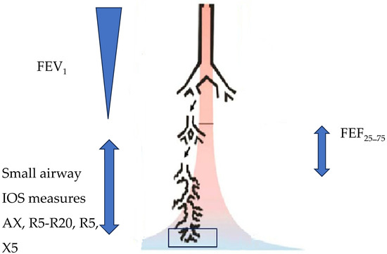 Figure 1. Schematic of the position of large, smaller, and small airways in pulmonary function testing [35].