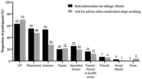 The source where participants seek more information about their AR and advice when their medication stops working (n = 185). Note: Participants were allowed to provide more than one answer.