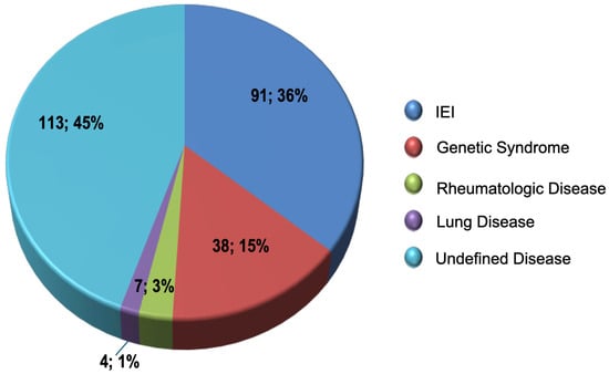 The 248 patients with an adequate response to vaccination with PPV23 presented a significant reduction in the rates of infectious events, except for skin infection and post-septal cellulitis (Table 2). The underlying disease diagnoses described in these patients’ medical records are shown in Figure 1.