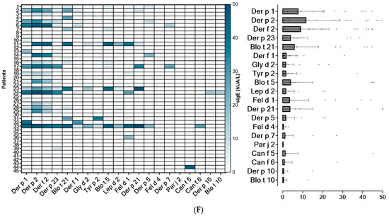 | Freq (%) | Der p 1 | Der p 2 | Der p 5 | Der p 7 | Der p 10 | Der p 11 | Der p 20 | Der p 21 | Der p 23 | Der f 1 | Der f 2 | Blo t 5 | Blo t 10 | Blo t 21 | Gly d 2 | Lep d 2 | Tyr p 2 |