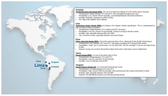 | Lima (North) | Lima (Centre) | Arequipa | Piura | Tacna | Tarapoto | |