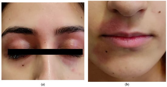 Cutaneous symptoms exacerbation after volcanic ash exposure in a 20-year-old woman (a,b).