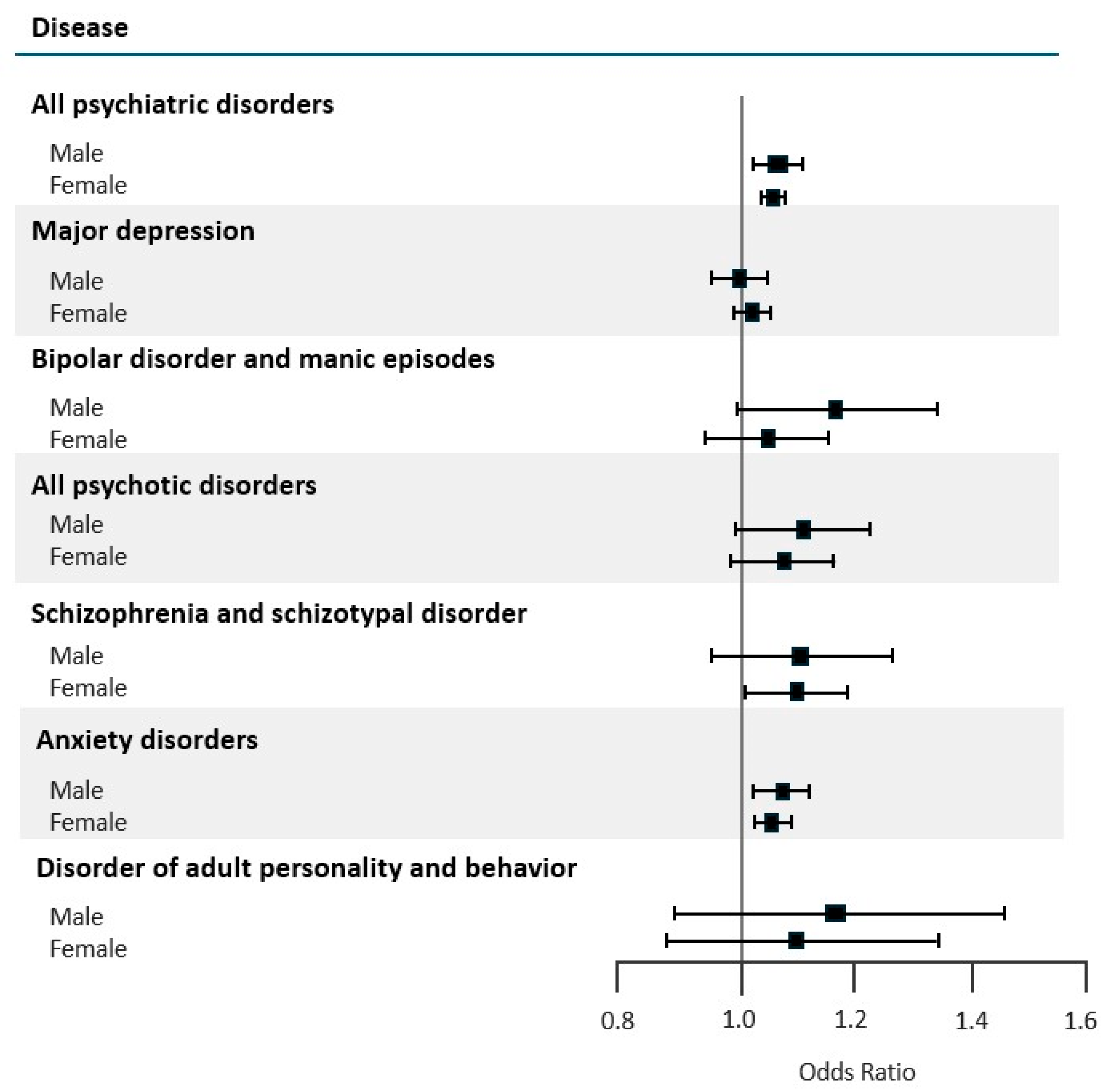 Figure 1). No other significant sex-based differences in the odds of individual psychiatric disorders were observed.