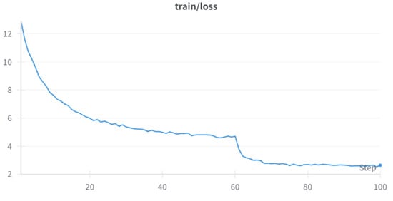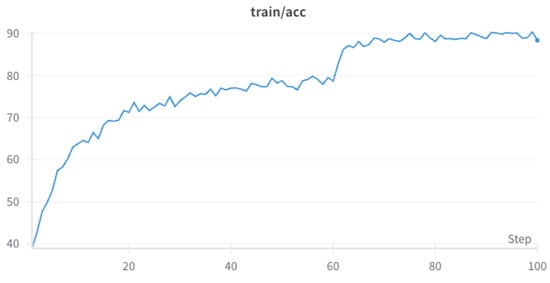 Here, we will describe the training data of our proposed EMNet which is training on CUB-200-2011, the detailed result is shown in Figure 4 and Figure 5. From Figure 4 and Figure 5, it can be seen that the training accuracy of EMNet steadily increases with the number of training epochs. After 60 epochs, the rate of improvement begins to slow down, and during the 90–100 epochs, the accuracy stabilizes. On the other hand, the training loss decreases with the number of training epochs, indicating that the model is continuously optimizing and reducing prediction errors.