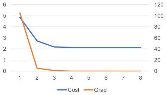 From Figure 14, it can be observed that as the number of iterations increases, both the cost and gradient gradually decrease, indicating that the optimization process is progressing towards the optimal solution.