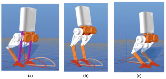 Python environment: (a) robot in stationary phase; (b) robot in jumping phase; (c) robot in landing phase.