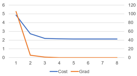 Figure 11 shows that as the number of iterations increases, both the cost and gradient gradually decrease, indicating that the optimization process is progressing toward the optimal solution.