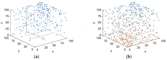 Comparative distribution of the initial population under two strategies. (a) Logistic Chaotic Mapping. (b) Logistic Chaotic Mapping with integrated opposition-based strategy.