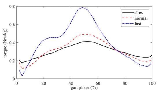 The state-of-the-art hip exoskeletons’ active assistance strategies mimic the hip joint torque of the human body in the whole gait cycle to carry out the assistance torques in specific proportion [,]. However, the lower limb movement of the human body is driven by inertia and weight in some phases during walking, and at this time the muscles do not contract actively but passively. For example, knee extensor muscles passively contract during the swing phase []. The metabolism and muscle activation of passive muscle contraction is lower than that of active muscle contraction. The benefits of active assistance in the passive phase of muscle contraction for reducing human energy consumption need further research.