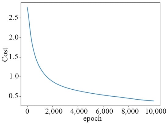 As shown in Figure 6, “epoch” represents the number of iterations and “Cost” represents the value of the cost function. As the number of iterations increases, the cost function value decreases, signifying that the predicted values are getting closer to the actual values. When the iterations of the neural network reach 10,000, the prediction accuracy of the new gesture data is 97.62%.