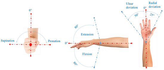 Hand’s DOFs due to wrist and forearm (reproduced from [6]).
