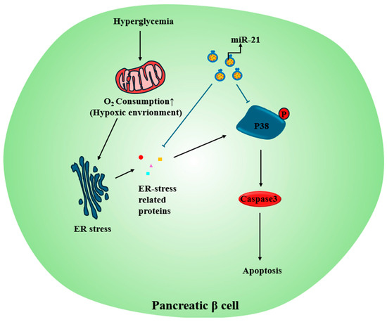 - Chen, J.; Chen, J.; Cheng, Y.; Fu, Y.; Zhao, H.; Tang, M.; Zhao, H.; Lin, N.; Shi, X.; Lei, Y.; et al. Mesenchymal stem cell-derived exosomes protect beta cells against hypoxia-induced apoptosis via miR-21 by alleviating ER stress and inhibiting p38 MAPK phosphorylation. Stem Cell Res. Ther. 2020, 11, 97. [Google Scholar] [CrossRef] [PubMed]