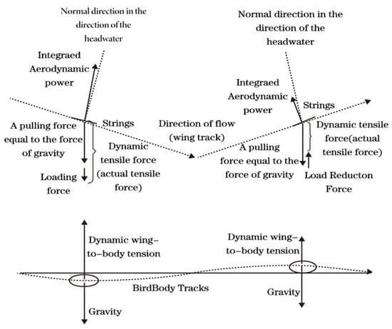 Birds optimize flight efficiency and aerodynamics throughout the wingbeat cycle by employing flexible wing deformation and active folding to adjust spanwise camber (see Figure 2). During the phase-wise motion process, birds generate forward thrust by exploiting dynamic variations in wing load. During the descending flight phase, the vertical lifting force between the main load and the wing increases dynamic lift in addition to the gravitational force of the main load, continuously applying load to the wings. (The main load maintains an upward acceleration, and the wings correspondingly increase the angle of attack and lift to stabilize linear flight). This loading force can be represented as the vector components along the direction of the wings’ forward motion. In the upward sliding flight phase, the vertical lifting force between the main load and the wing reduces dynamic lift from the main load’s gravitational force, continuously unloading the wings. (The main load maintains a downward acceleration, and the wings reduce the angle of attack or wing area, decreasing lift to sustain linear motion). This unloading force is also equivalent to a positive component along the direction of the wing’s motion, resulting in wave-like forward motion throughout the entire process.