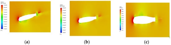 Figure 12a illustrates that as the angle of attack increases from −12° to 0°, the lift coefficient  gradually shifts from negative to positive, signifying a transition from negative to positive lift.