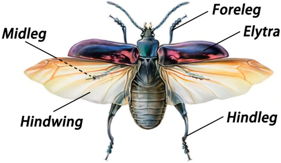 - Phan, H.-V.; Park, H.C.; Floreano, D. Passive wing deployment and retraction in beetles and flapping microrobots. Nature 2024, 632, 1067–1072. [Google Scholar] [CrossRef]