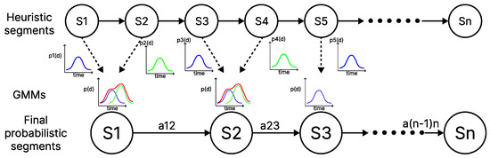 Topological diagram of the segmentation process using GMMs. The heuristic segments serve as initialization points for the probabilistic blending, thereby reducing unnecessary segments.