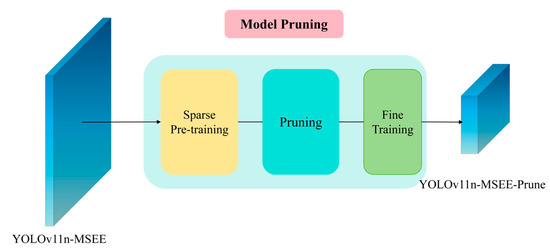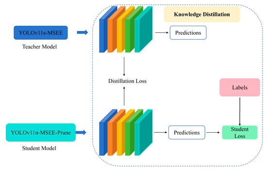 This study was conducted on a platform running the Microsoft Windows 10 operating system. The hardware configuration comprised an Intel (R) Core (TM) i9-14900KF central processing unit (CPU) and an NVIDIA GeForce RTX 4070 Super graphics processing unit (GPU) equipped with 16 GB of video memory. The software environment utilized Python 3.11, with the deep learning framework implemented using the PyTorch 2.0.0 library accelerated by Compute Unified Device Architecture (CUDA) 11.8. During the initial model training phase, a batch size of 32, 4 data loading threads, and 300 epochs of training were employed. Optimization was performed using the Stochastic Gradient Descent (SGD) algorithm, with the final model selected based on validation set performance. For the subsequent model pruning stage, training proceeded for 300 epochs with a reduced batch size of 16 and 4 data loading threads, applying the Layer-adaptive Magnitude Pruning (LAMP) method. In the knowledge distillation stage, the batch size was reverted to 32 and the number of data loading threads was increased to 8. This comprehensive optimization pipeline culminated in the acquisition of the target data model.
