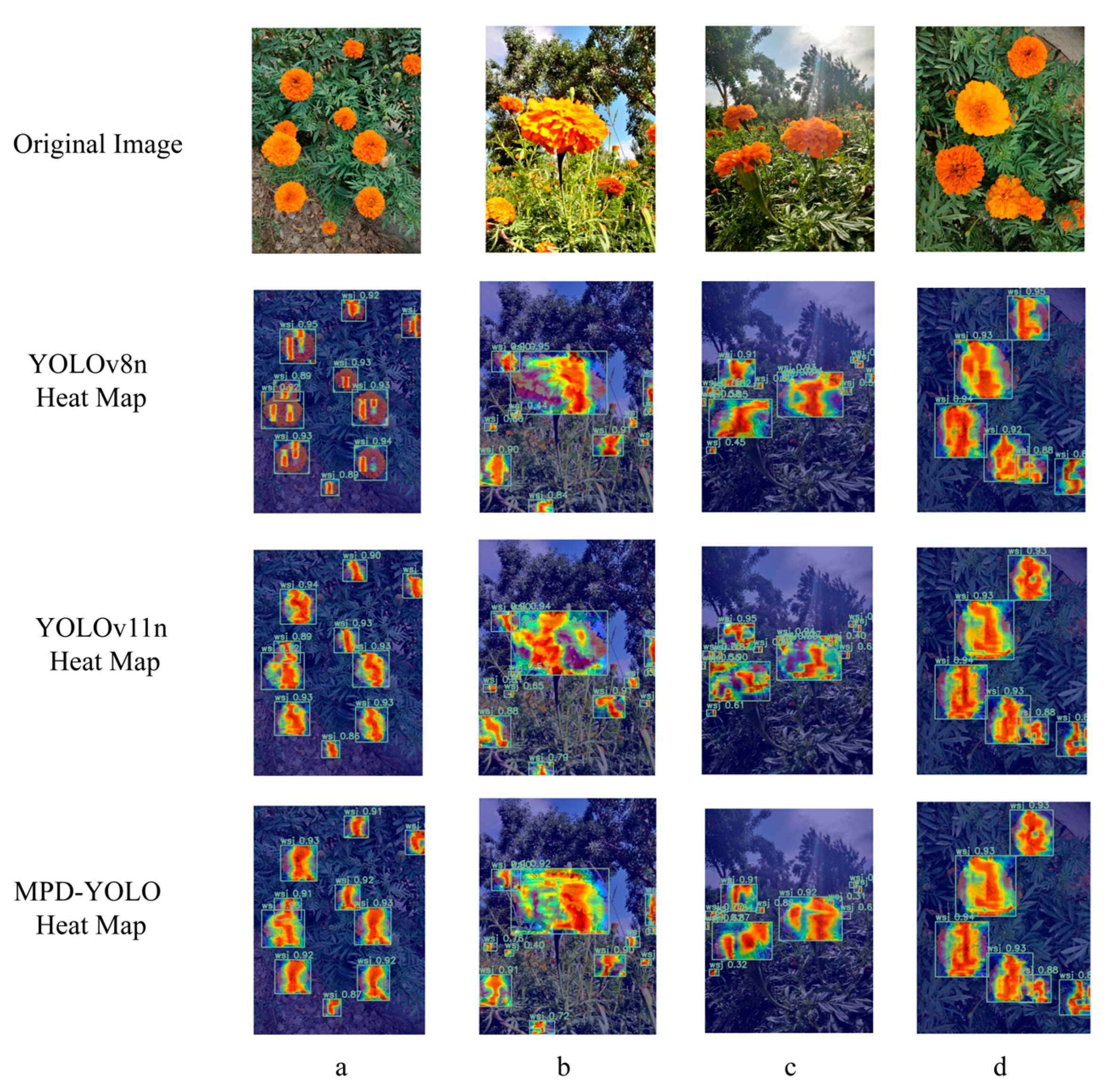 - Fan, Y.; Tohti, G.; Geni, M.; Zhang, G.; Yang, J. A marigold corolla detection model based on the improved YOLOv7 lightweight. Signal Image Video Process. 2024, 18, 4703–4712. [Google Scholar] [CrossRef]