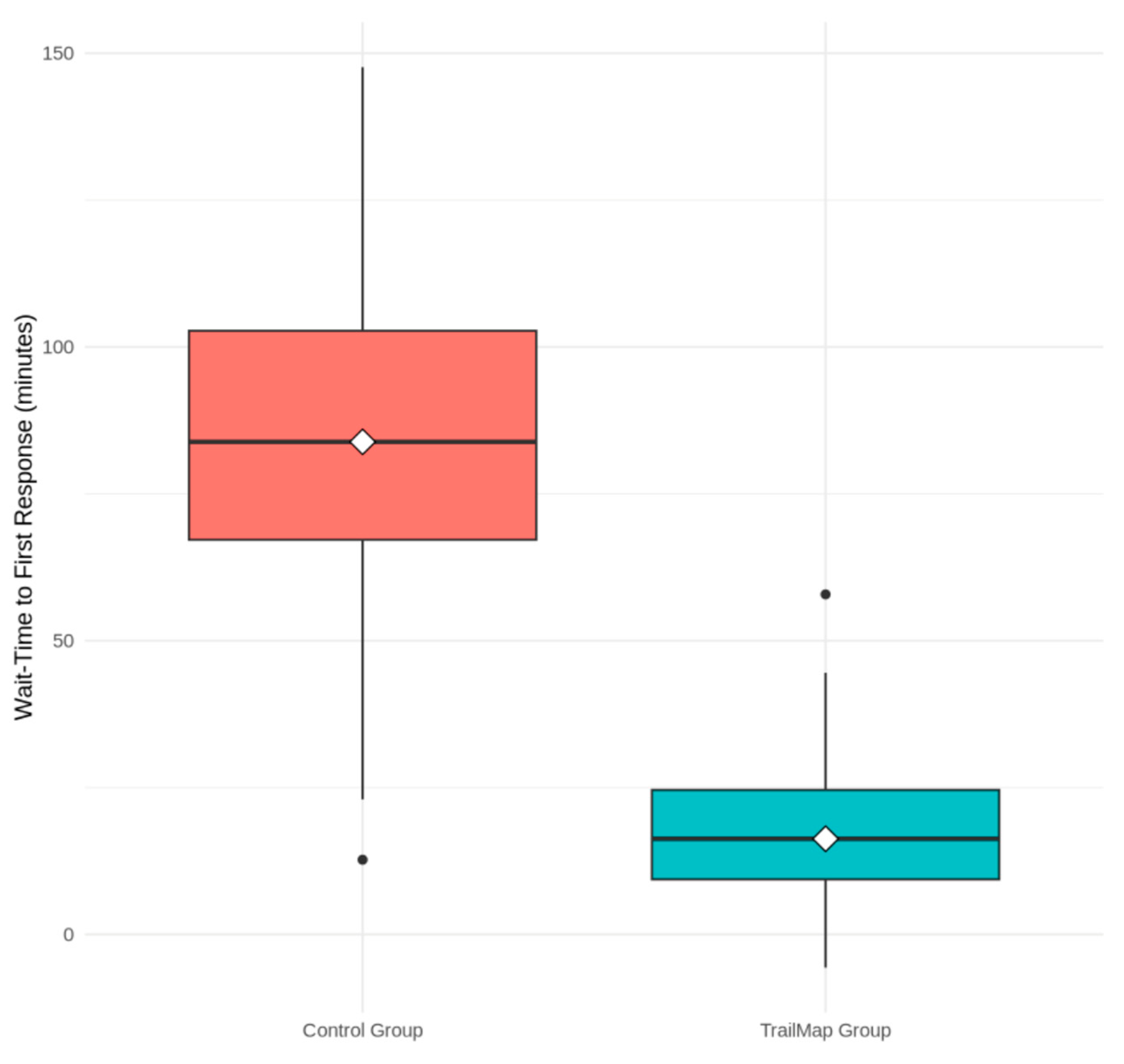 - Primary Outcome (Efficiency): Median wait time to first response, measured in minutes. This was calculated from server-side timestamps from the moment a request was submitted to the moment the first response was posted. System logs were used for this purpose.