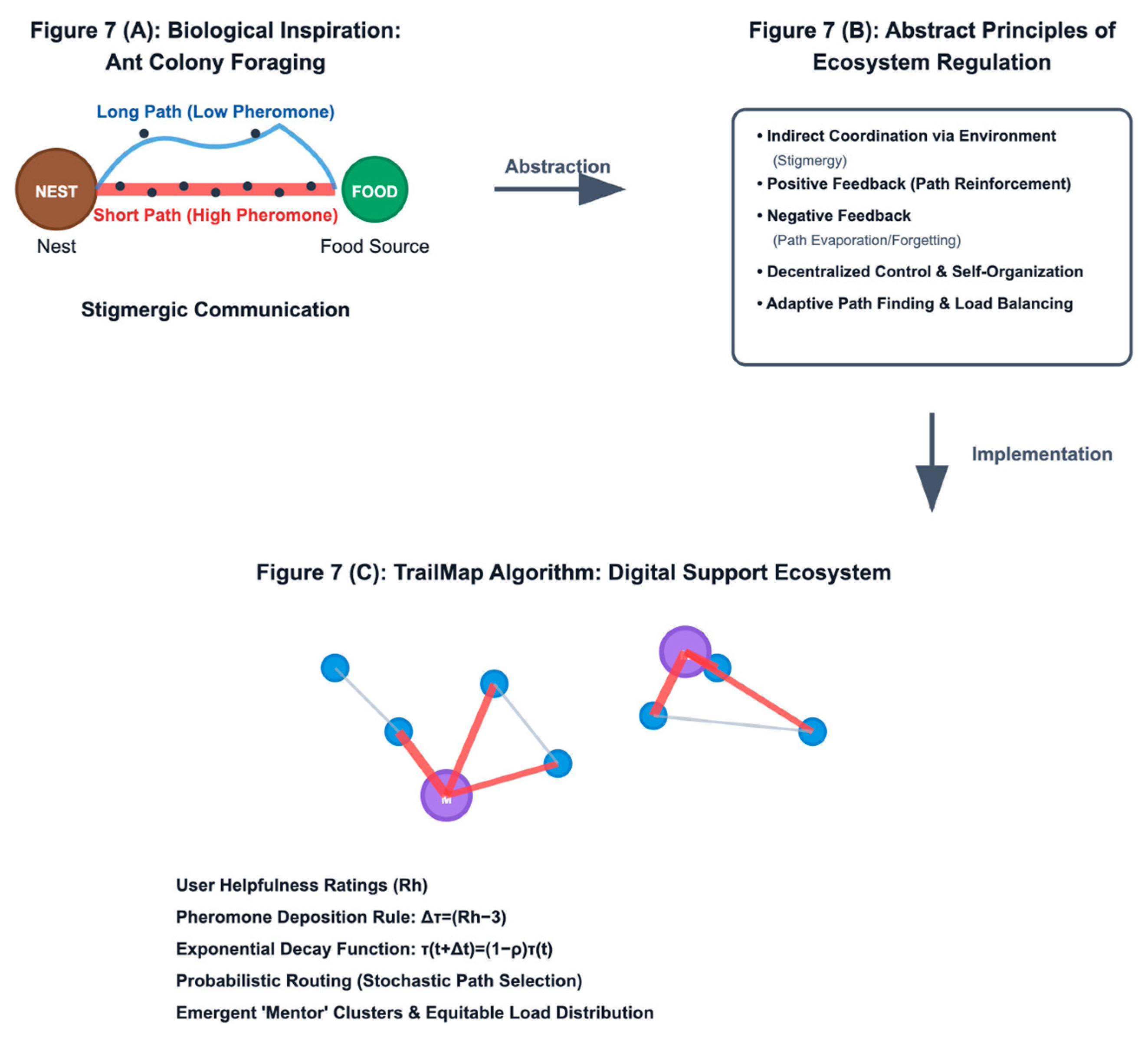 Ngabo-Woods, H.; Dunai, L.; Verdú, I.S.; Turcanu, D. TrailMap: Pheromone-Based Adaptive Peer Matching for Sustainable Online Support Communities. Biomimetics 2025, 10, 658. https://doi.org/10.3390/biomimetics10100658