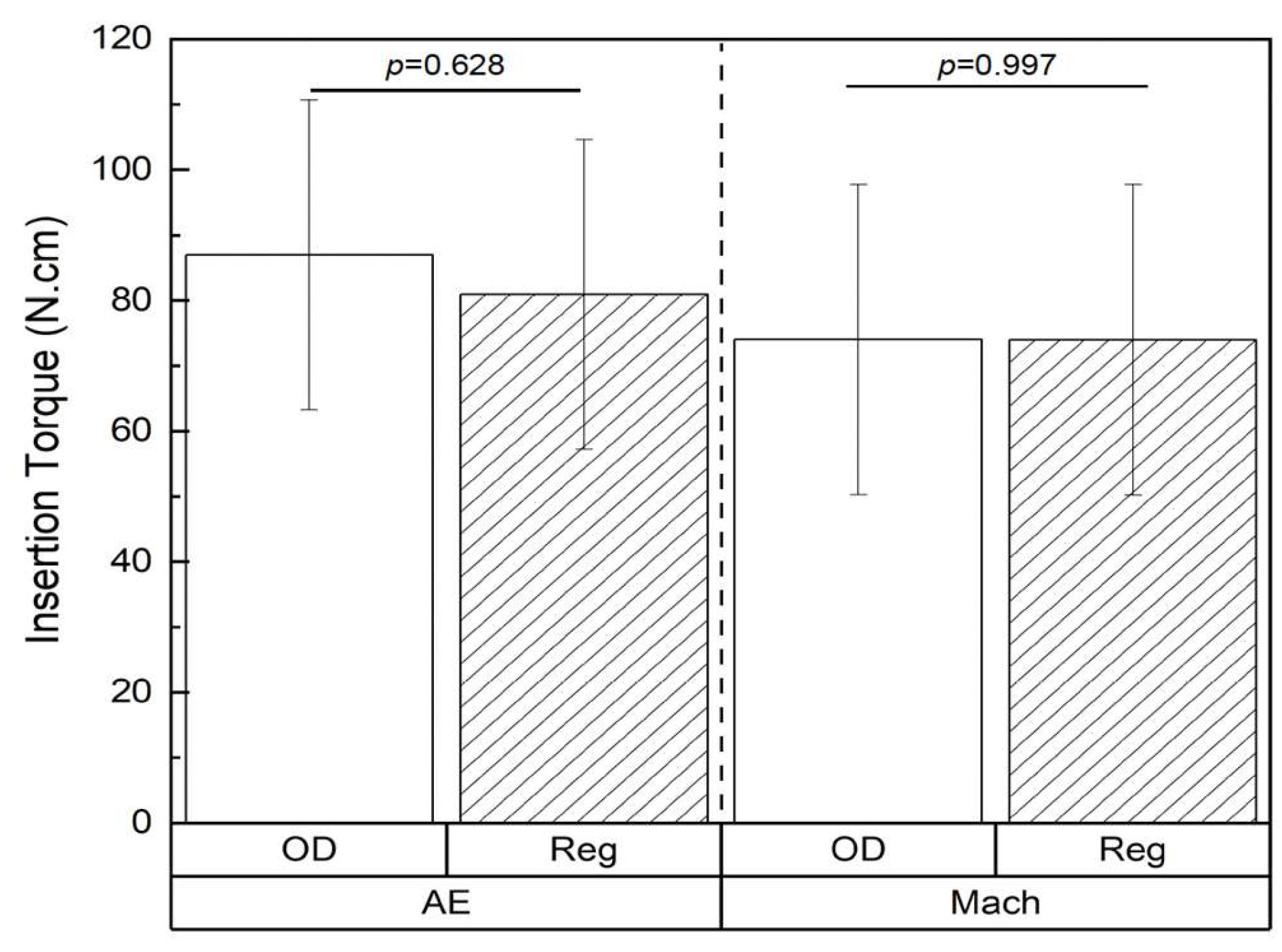 - Meira, T.M.; Tanaka, O.M.; Ronsani, M.M.; Maruo, I.T.; Guariza-Filho, O.; Camargo, E.S.; Maruo, H. Insertion torque, pull-out strength and cortical bone thickness in contact with orthodontic mini-implants at different insertion angles. Eur. J. Orthod. 2013, 35, 766–771. [Google Scholar] [CrossRef]