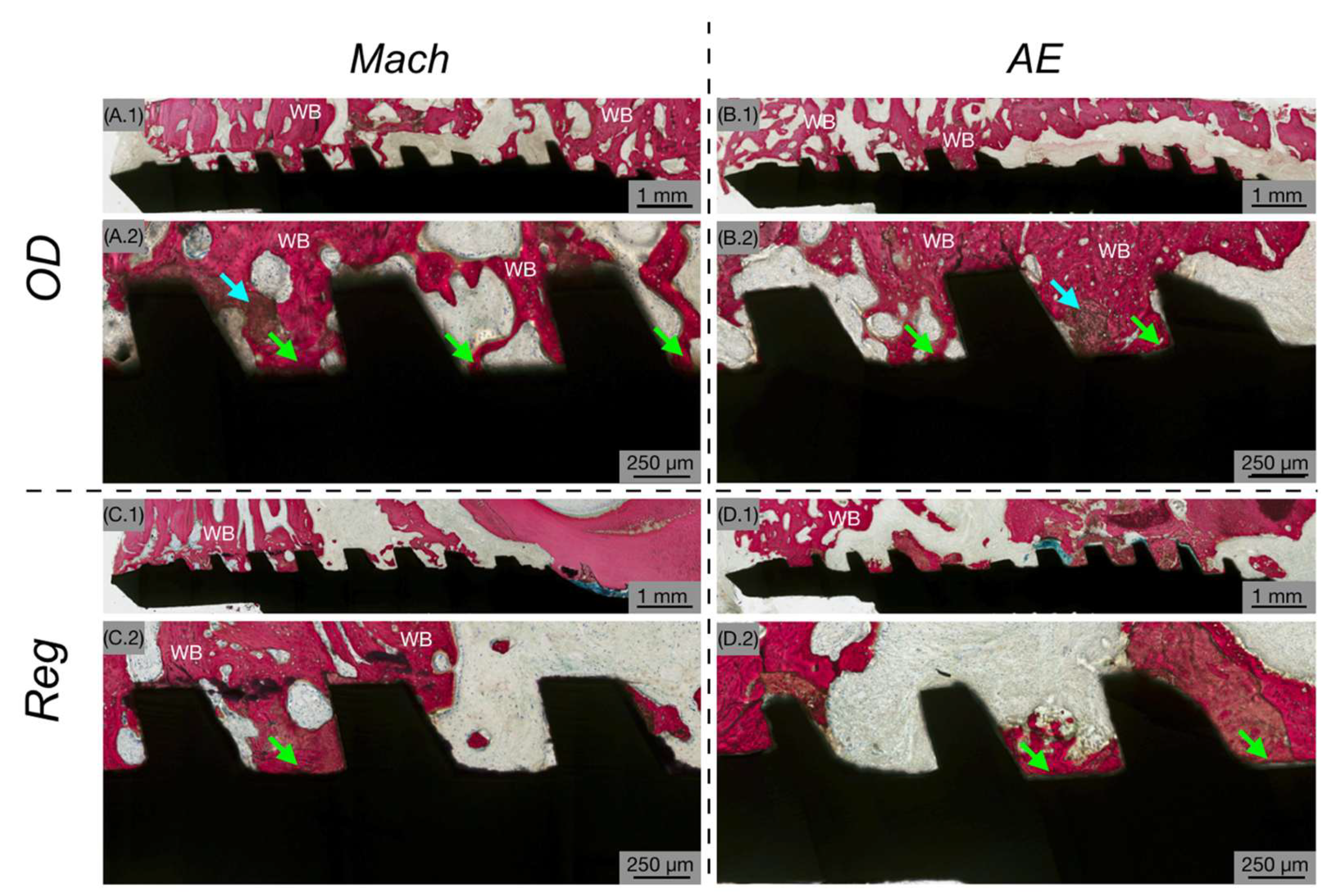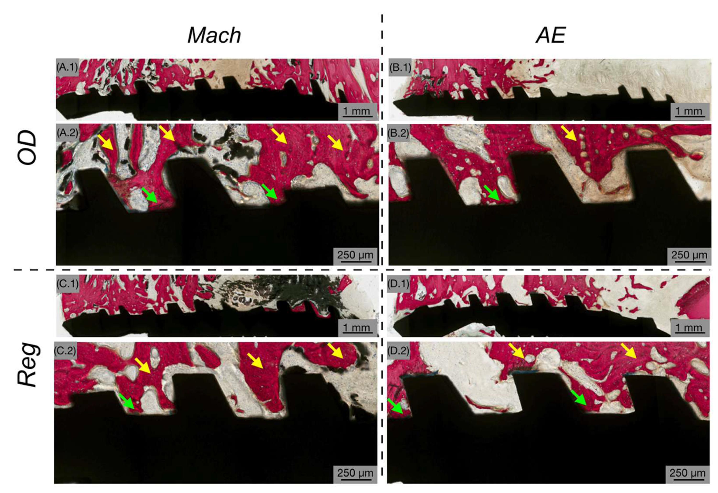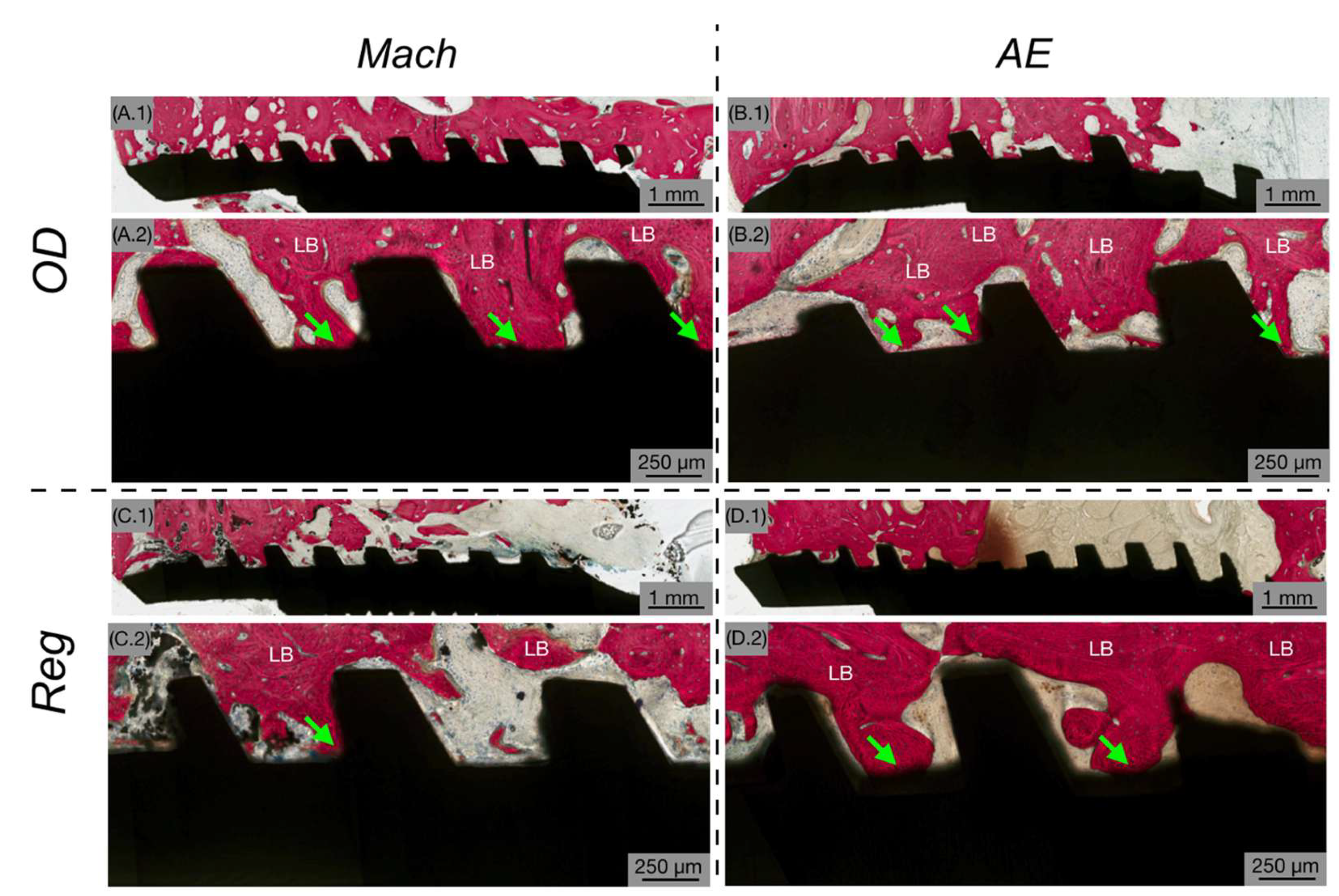 - Zhu, G.; Wang, G.; Li, J.J. Advances in implant surface modifications to improve osseointegration. Mater. Adv. 2021, 2, 6901–6927. [Google Scholar] [CrossRef]