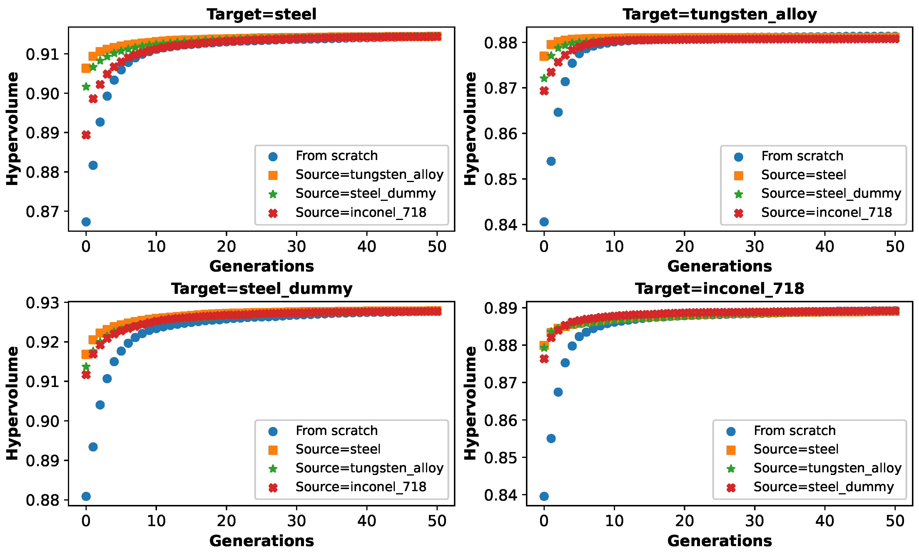 The lower the adaption cost, the better the considered algorithm is at exploiting information gained on a previous optimization task for a new optimization task. As reference values, we also consider the cost to solve the optimization task from scratch in the worst, average, or best case.