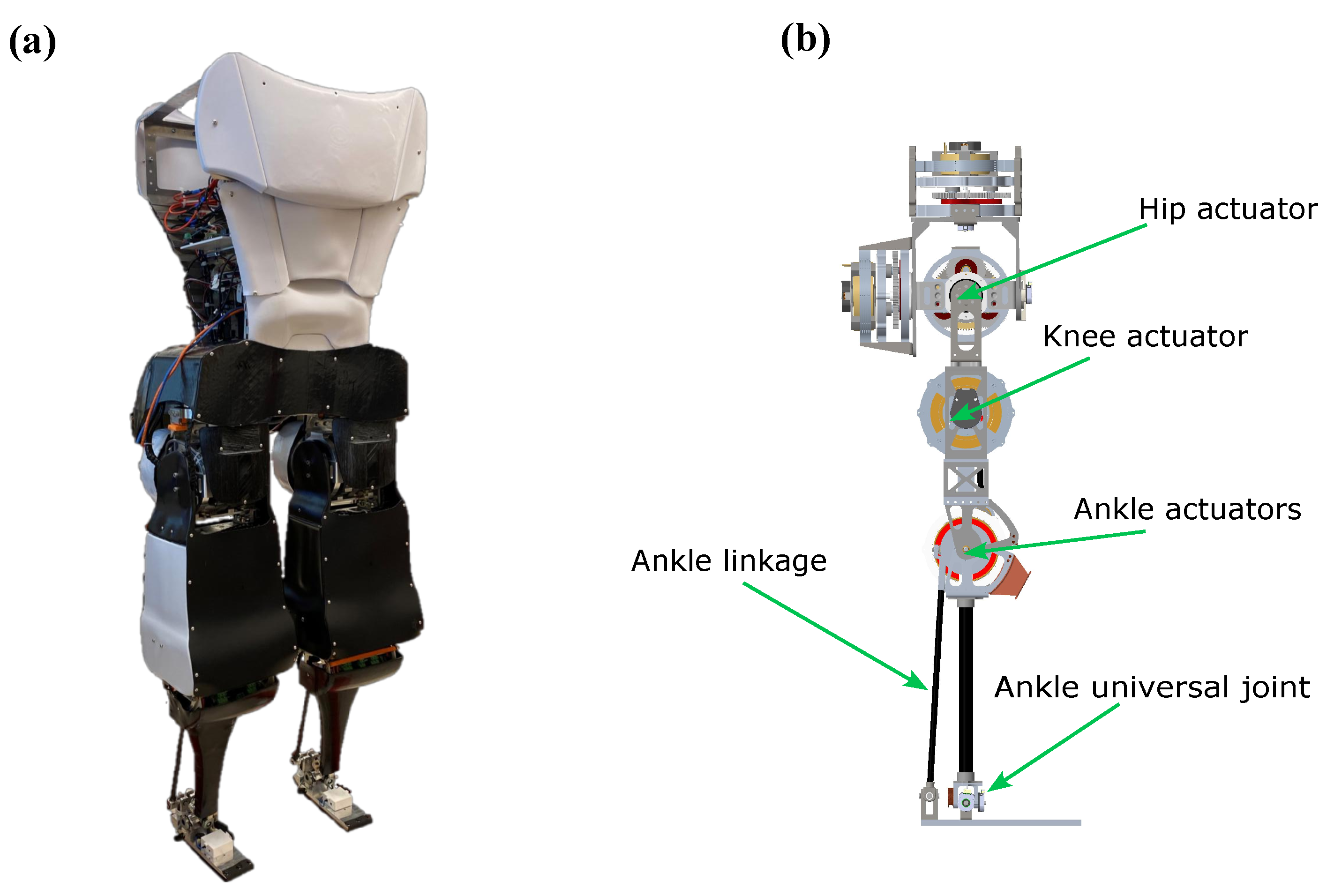 - Semasinghe, C.; Taylor, D.; Rezazadeh, S. Design of Actuators for a Humanoid Robot with Anthropomorphic Characteristics and Running Capability. Actuators 2025, 14, 243. [Google Scholar] [CrossRef]