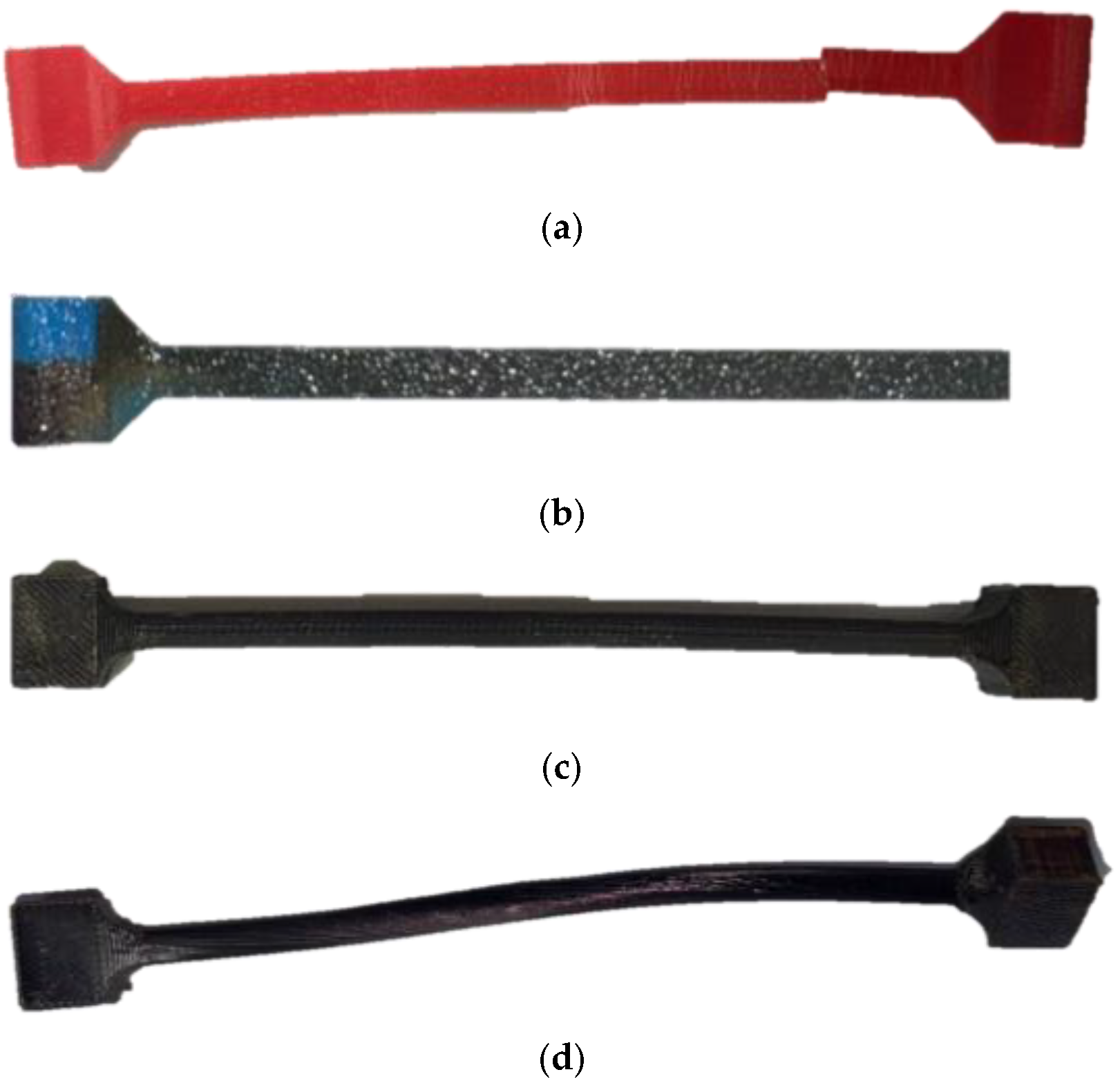 Figure 8 shows the PLA model and its coating after the tension or torsion test was performed.