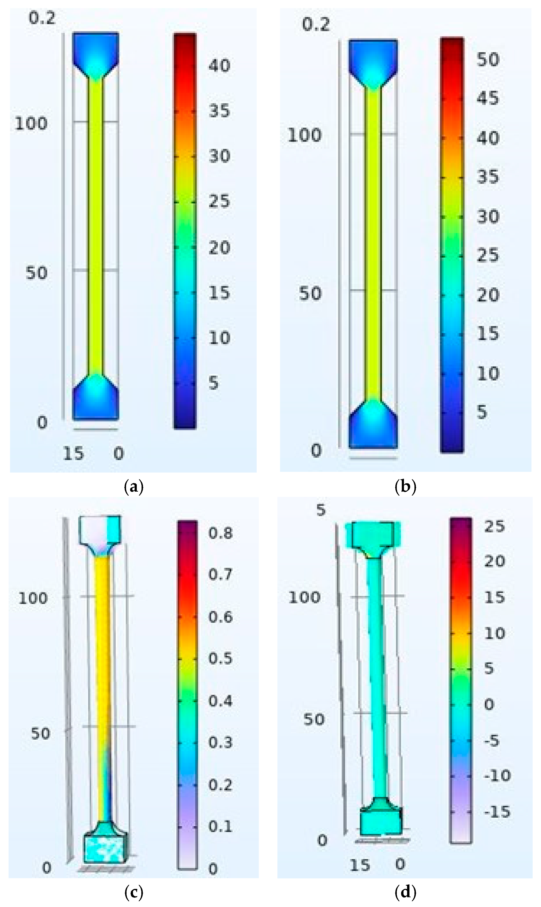 Numerical simulation, carried out through finite element analysis, offers numerous facilities and advantages. Its approximation to reality predicts similar performance, at a lower cost, or by evaluating scenarios that compromise the physical integrity of a living being. However, like any other test, it is necessary to gather as much information as possible about the variables involved. This is particularly true when validating a material’s properties and mechanical behavior. To approach and evaluate the results of each test, numerical tensile and torsion simulations were developed using the computational tool COMSOL Multiphysics, based on 3D sample models and elasticity and shear modules obtained from torsion and tension tests, respectively.